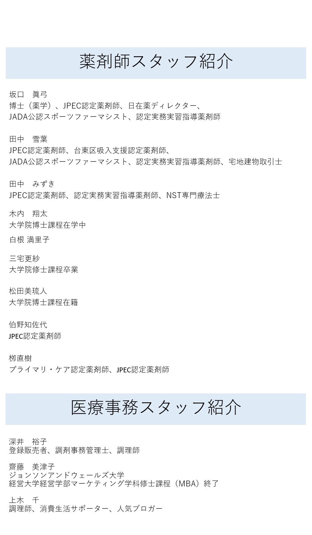 薬剤師、臨床検査技師、実務実習指導薬剤師、公認スポーツファーマシスト。